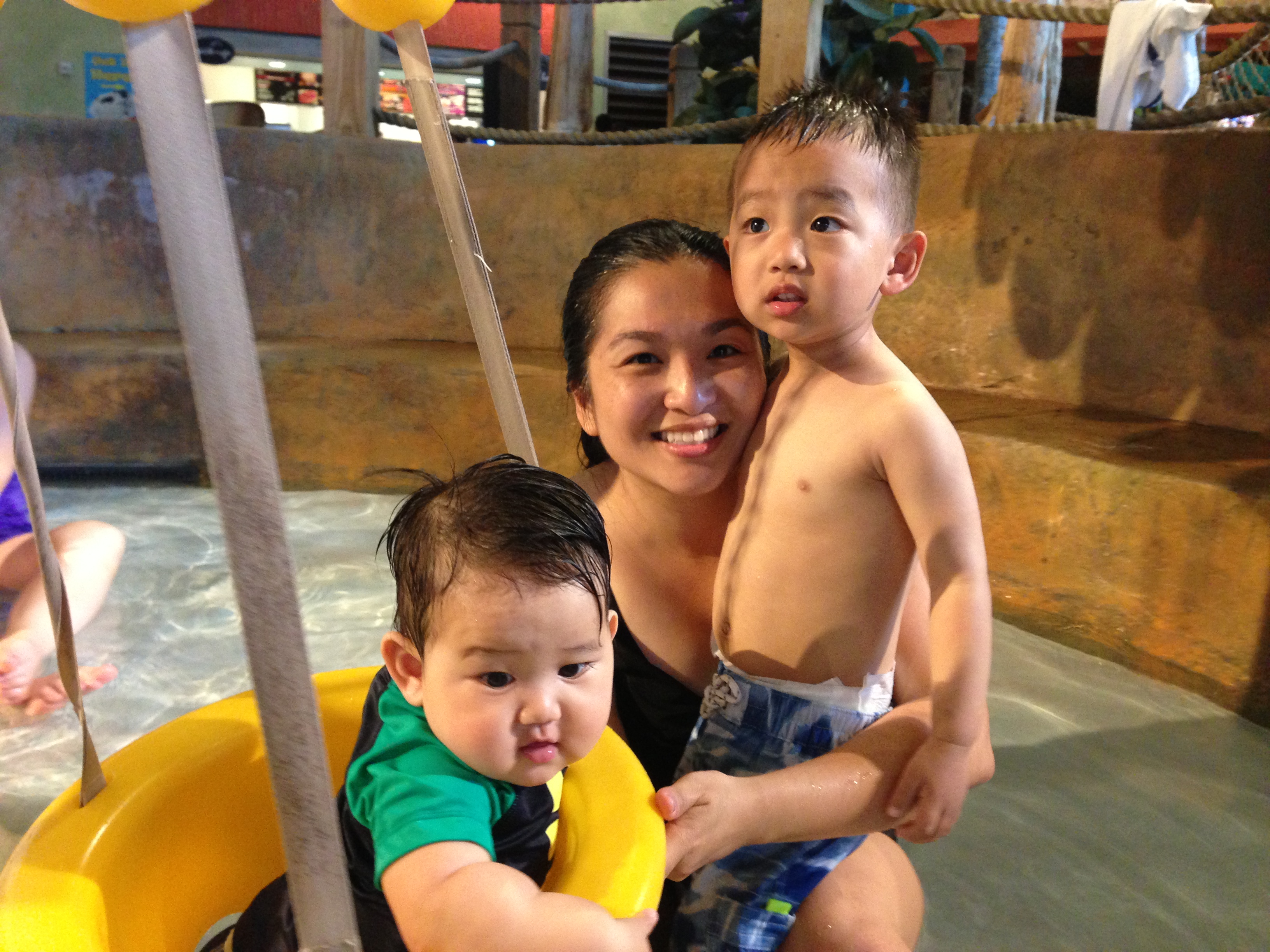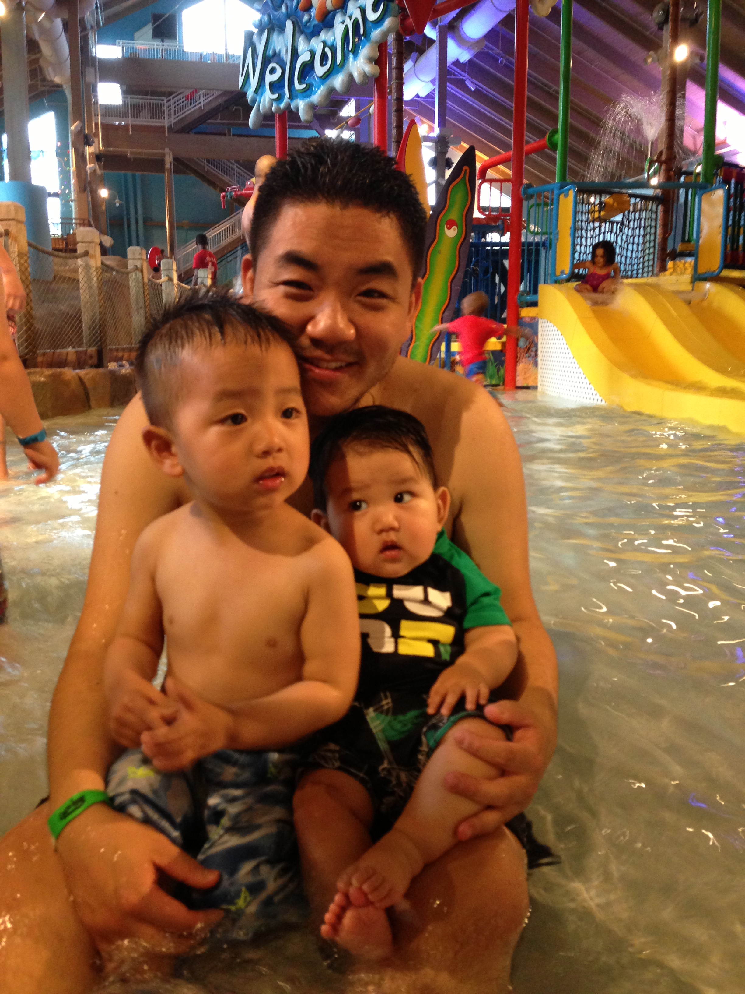 I have to confess that even still, I managed to feel pangs of “woe is me” when I saw other families with their grandparents, lending all-around helping hands so that the parents could go have a relaxing drink together or get on the waterslides without taking turns but I tried to shake it off, like the communal water beading on my body. A waterpark with an infant and toddler is not easy as we can never exhale, but how memorable was it to see my little morsels wide-eyed as they saw their mama plunk down into the water at the end of the slide? Their first waterpark experience, Ellis’ first outside-the-bathtub, water experience.