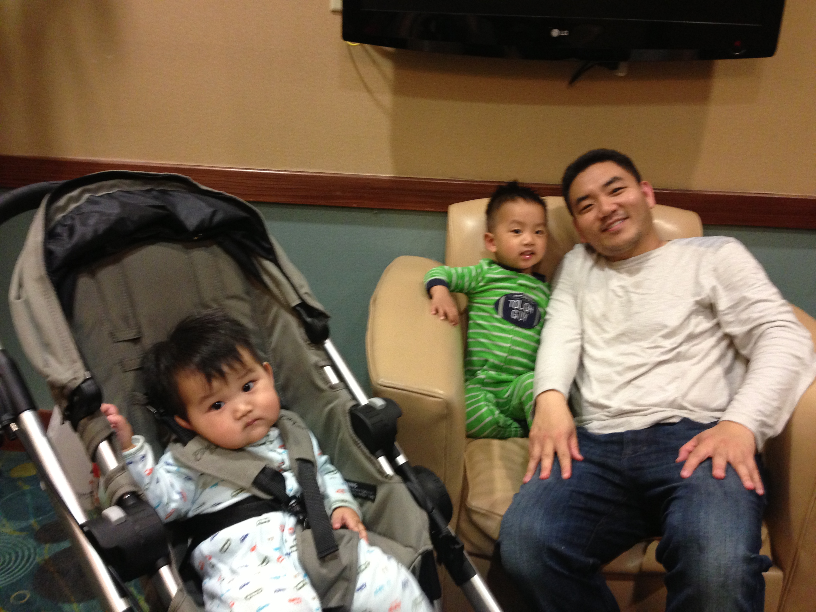 Kevin warned me to just pop in while he kept the car running so that we can get to the water park in a timely fashion. Even without a shopping cart, I did not heed his warning. So, a cool, hip grandpa of three small children, who was also there to make a single purchase (a huge tv), had to give me a shopping cart ride back to our still-running Honda as I had picked up boxes of assorted nuts, Goldfish, and freeze-dried fruits for the kiddies.