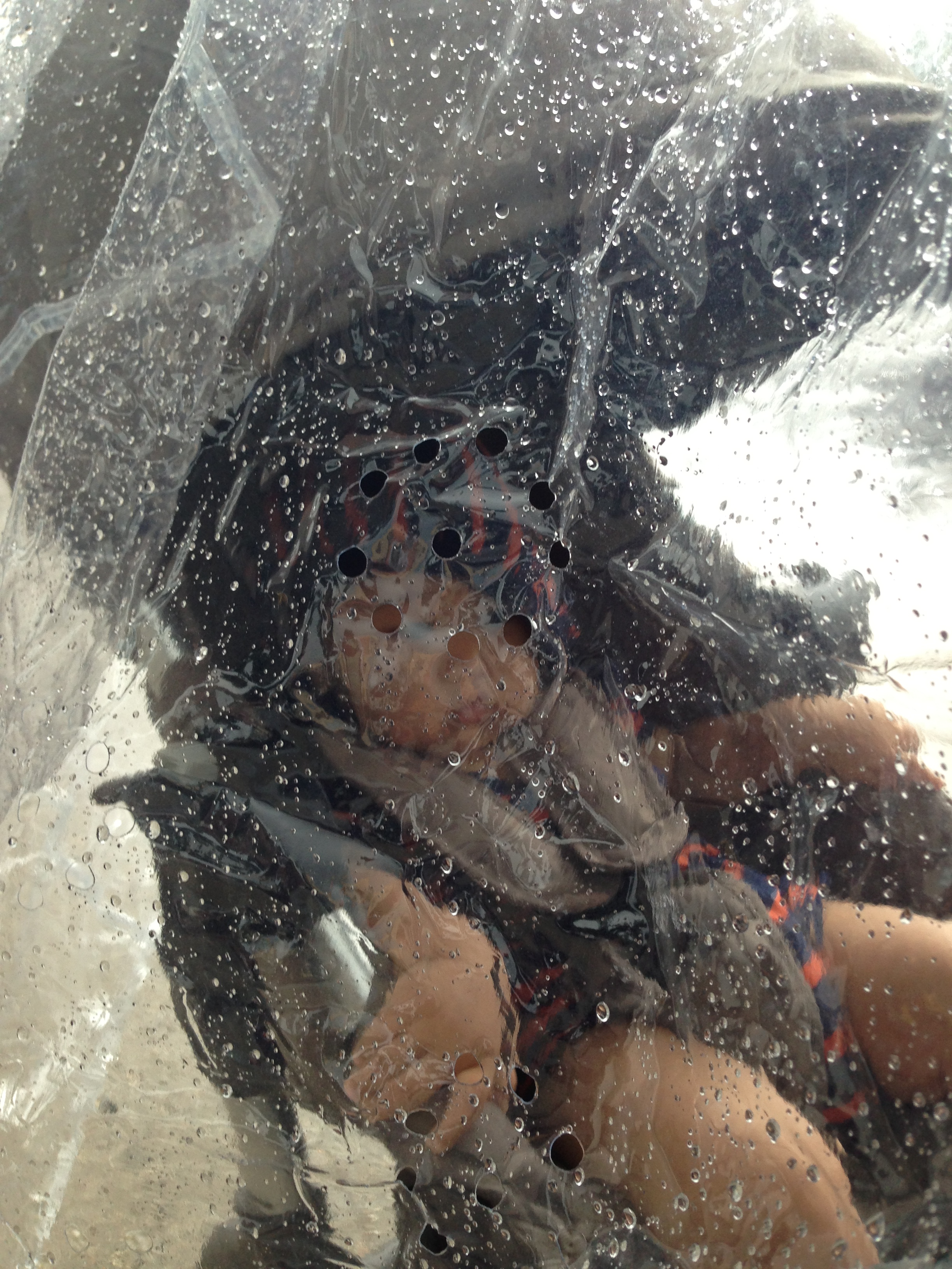 Once it finally turned into a drizzle, I told them we were going to try walking home. Micah kept asking me to play “I Spy” with him while I could hardly grip the stroller handle from all the water and sunscreen.