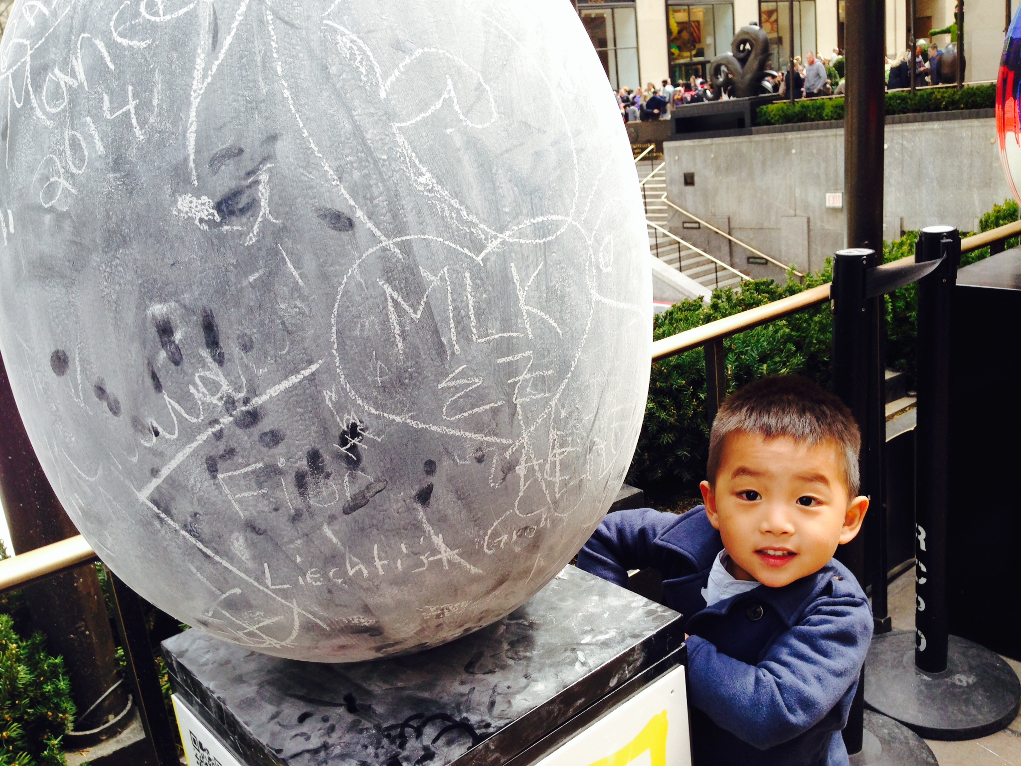 Speaking of sounds, I’m hearing raccoon-rummaging sounds from the boys’ room. Sounds like Ellis never succumbed to a real nap today due to sensory overload: subway, Rock Center Plaza, giant Easter eggs, Daddy’s office, more subway.