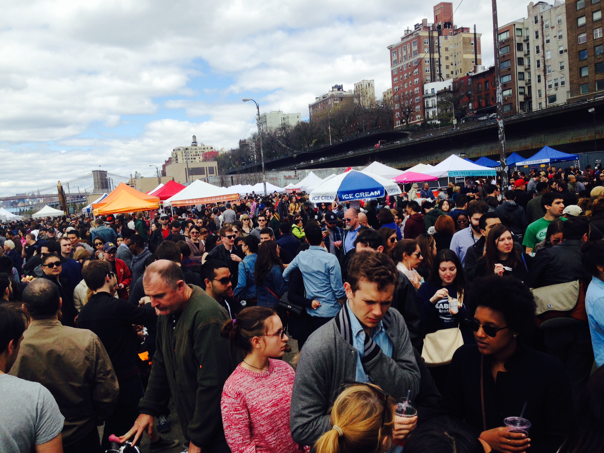 We rolled to Smorgasburg in Brooklyn Bridge Park on Sunday after church. About 100 food vendors.
