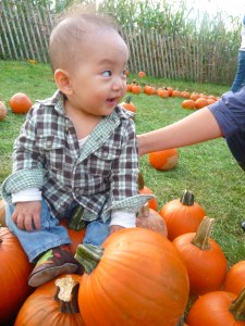 I was so pleased that he ate his bowl full of meeyukgook and rice that I rushed to the kitchen to see if I can get him to eat an orange while still seated. I dropped the orange from its bowl so I bent down to pick it up. Next thing I know, a small frypan falls down to hit me upside the head, like I am Wile E. Coyote. I lurch up to see where the hell it came from so that I can properly blame my husband for its lethal placement on the counter, when the bowl that was holding the orange, shatters onto the floor. SHATTERS. Meanwhile M is in the living room, starting to get annoyed in his chair. He starts imitating me loudly, “Uh-OHHHH, Uh-OHHHH, Uh-Ohhhhhh!”