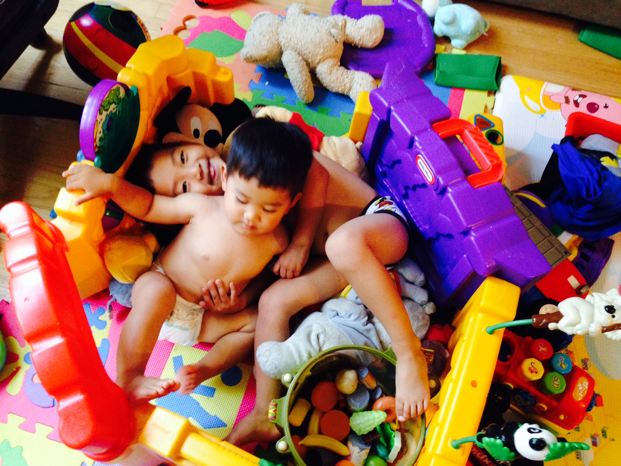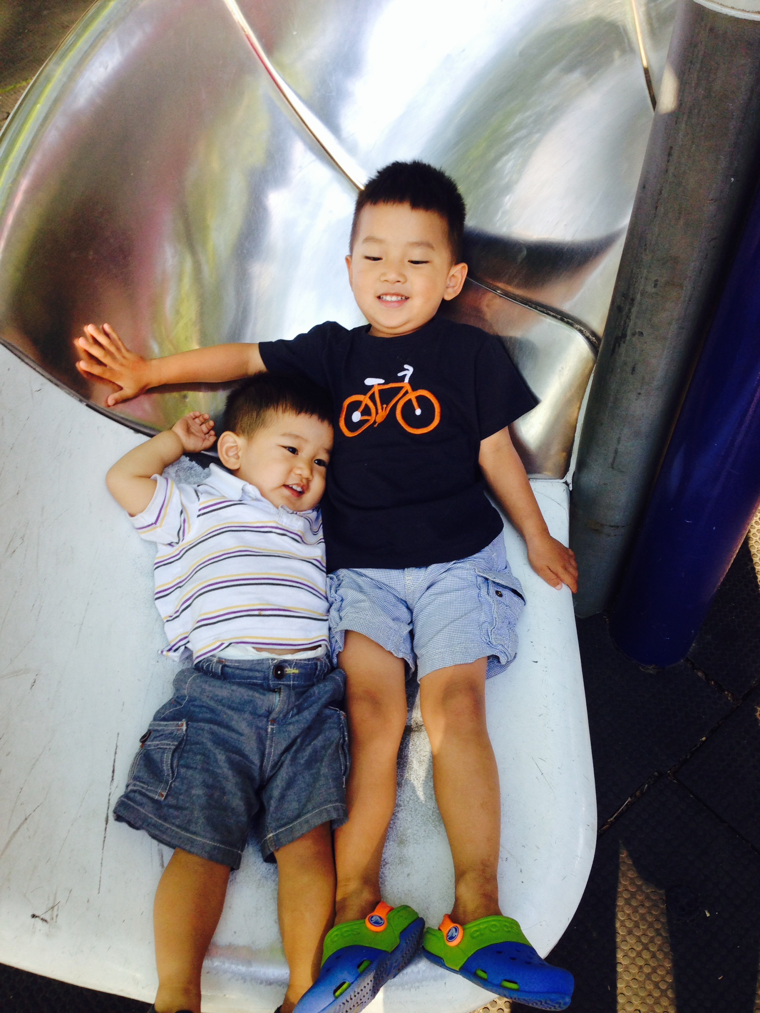 As if you two aren’t 3.5 and 21 months old but Tom Sawyer and Huckleberry Finn, chewing on a blade of grass, beaming about the getaway you just pulled off.
